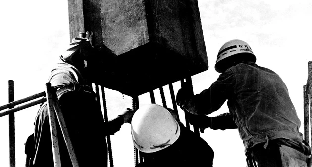 工場で柱・梁を製作し現場で組み立てるという工法は、当時は珍しく、工業新聞にも取り上げられました。