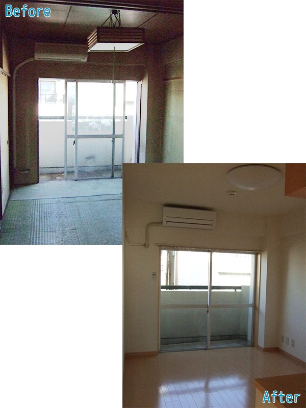 賃貸物件のリフォームです。築年数が古かったので間取りまで変えてスケルトンリフォームしました。