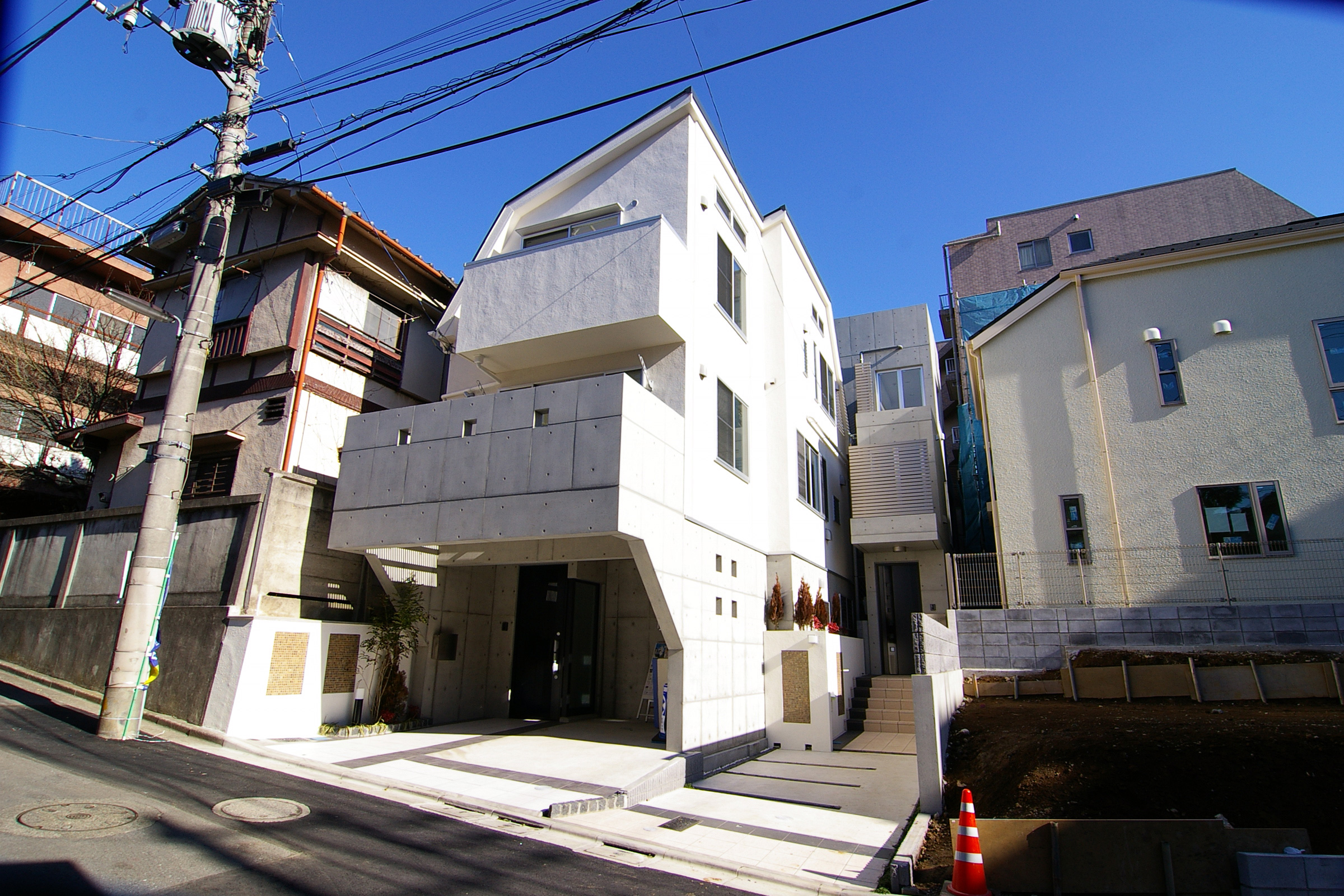 高低差がある敷地のため、1階鉄筋コンクリート造、2・3階木造の混構造です。 建築基準法改正後、混構造の構造計算について審査方針が決まらず滞っておりましたので、当社では改正後初の混構造です。リビングにあるバルコニーは床をグレーチング(光が漏れる構造)にすることで建築面積に含まず、広い空間が取れています。