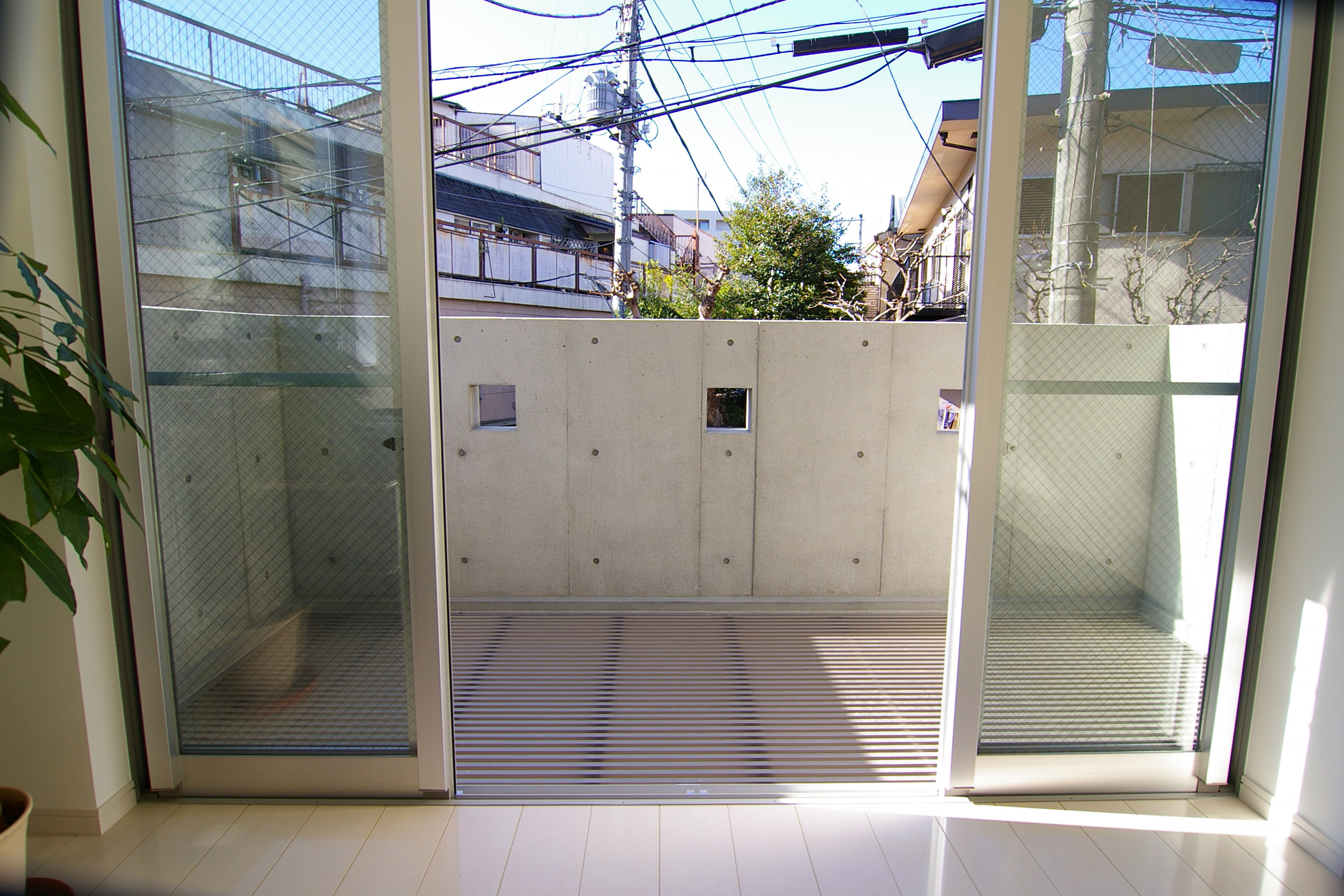 建築基準法改正後、混構造の構造計算について審査方針が決まらず滞っておりましたので、当社では改正後初の混構造です。リビングにあるバルコニーは床をグレーチング(光が漏れる構造)にすることで建築面積に含まず、広い空間が取れています。