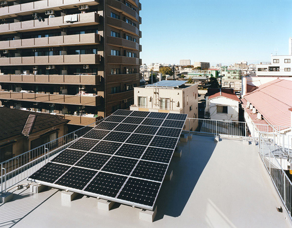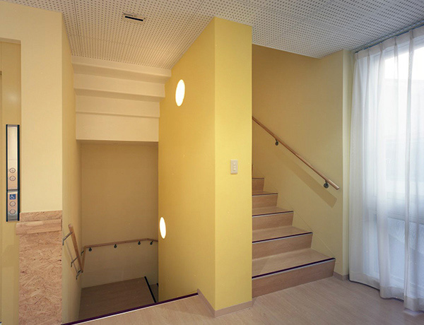 北区 K病院管理棟 新築 鉄骨造とした、施工のみ弊社で請け負った物件です。外壁はALC塗装仕上げ、内壁は腰部分が、OSB合板貼り、上部は塗装仕上げです。北区の新築シンプルな外観ながら病院施設としての暖かさを醸し出せるよう、やわらかさをもつOSB合板を使用しました。屋上には新築病院らしく、太陽光発電設備も設置し、省エネ効果を図っています。病院の機能だけでは無くリハビリセンターの仮営業施設に生かせるよう水回りを配慮してあります。
