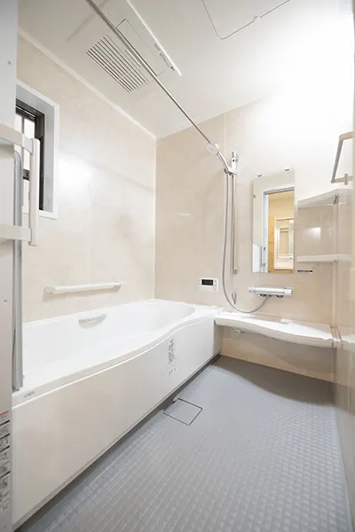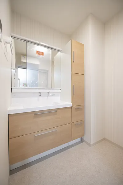 ご夫婦と息子様の3人でお住まいになる住宅です。水廻り、寝室、リビングを1階にまとめ、将来、ご夫婦が1階だけで生活ができるような間取りをご提案しました。