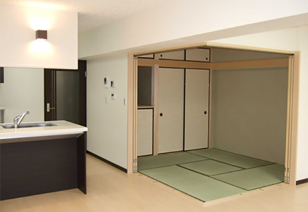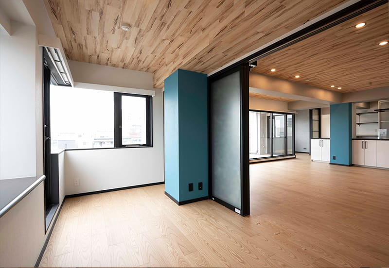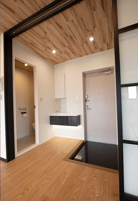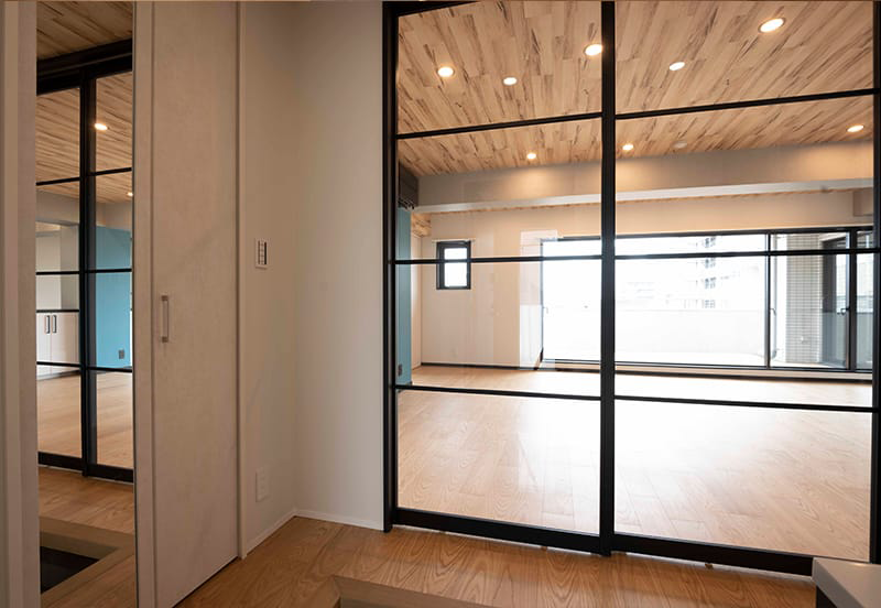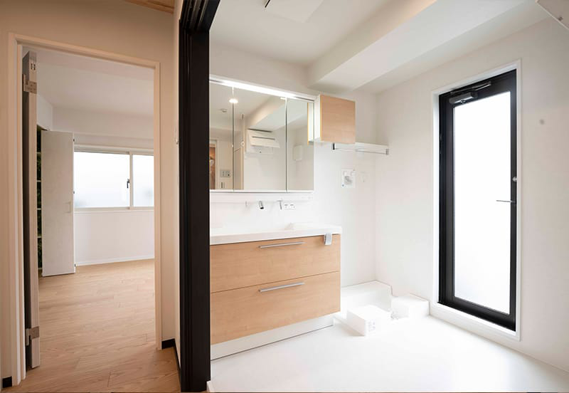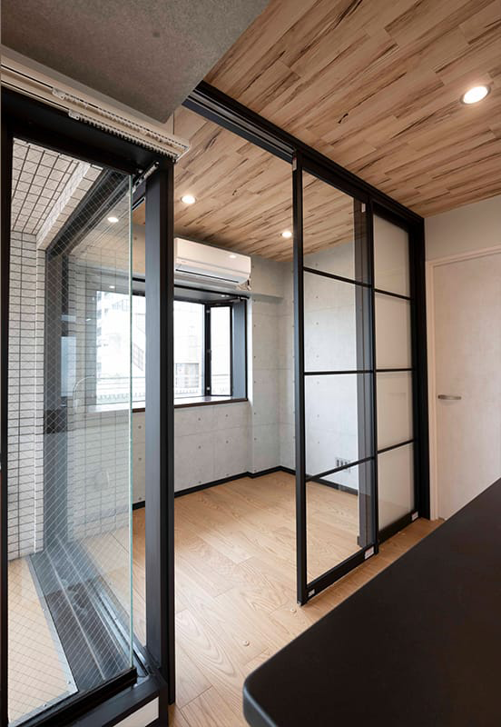 採光と通風を考え、扉を開放すればLDKと一体化できるようにしました。キッチンの脇に設置したので、家事動線もすっきりしました。