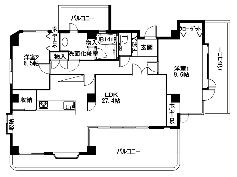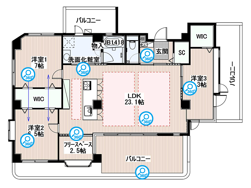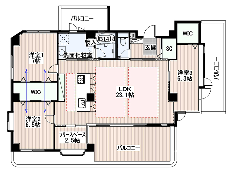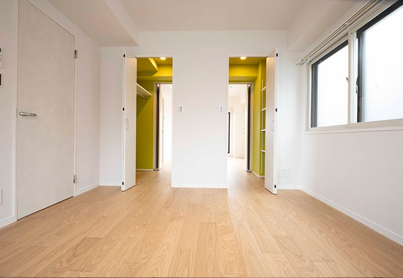 洋室2部屋をウォークインクローゼットで仕切ることで、扉を開ければ採光・通風が期待できるようにしました。