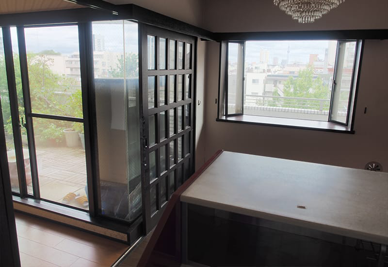 面積が広く、4方向に窓があるのに物件の良さが活かされていない物件でした。リフォーム後は部屋が分かれていながらも一体感を持たせ、採光や換気も最大限にできるように間取を考えました。