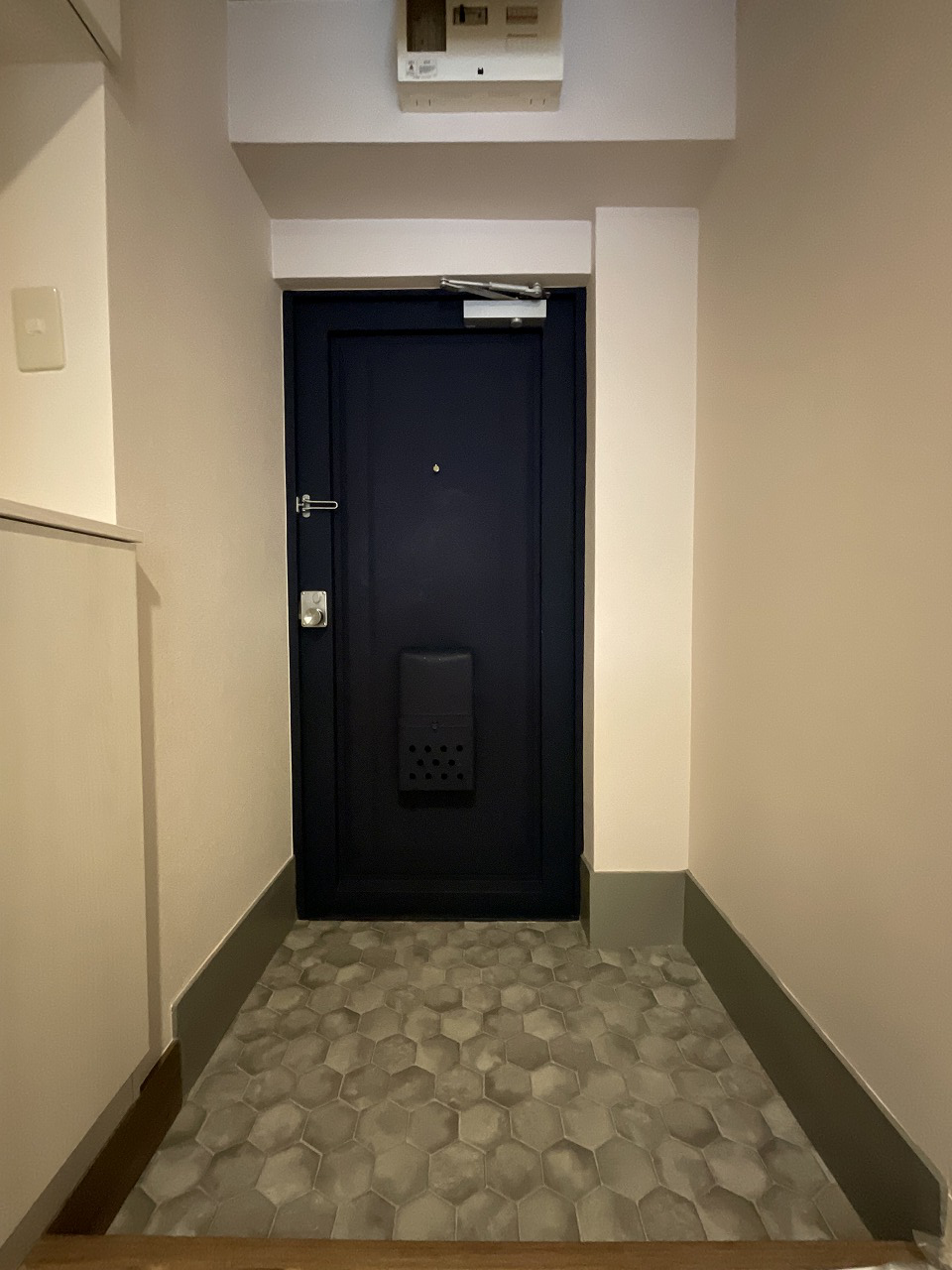 築49年の賃貸物件をスケルトンリフォームしました。間取りを2Kから1LDKに変更し、1人暮らしでも2部屋欲しい方をターゲットに設計しました。玄関ドアや窓は既存のままのため、あえて昭和レトロ風の内装デザインにしています。また、賃貸物件としての価値を上げるためトイレ・洗面所は独立させ、浴室には追焚、換気乾燥暖房機を設置し、システムキッチンにする等、設備を充実させています。